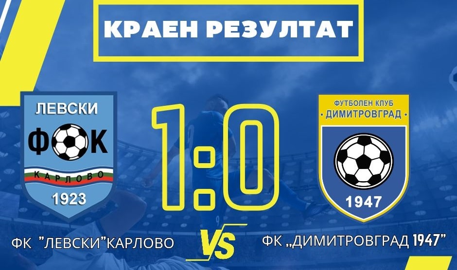 Димитровград 1947 загуби с 0:1 при гостуването си на Левски (Карлово) в среща от 16-ия кръг на Югоизточната Трета лига.